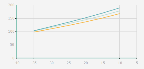 | 蒸發(fā)溫度 | 制冷量+/-5% | 能耗+/-5% | 現(xiàn)在能效+/-5% | 氣體流速+/-5% | 能效+/-7% | ||||