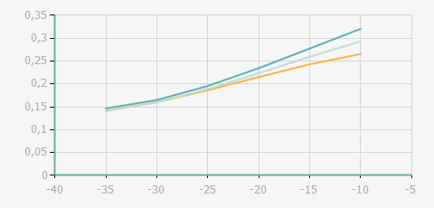 | 蒸發溫度 | 制冷量+/-5% | 能耗+/-5% | 現在能效+/-5% | 氣體流速+/-5% | 能效+/-7% | ||||