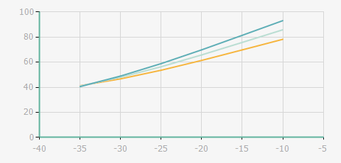 | 蒸發(fā)溫度 | 制冷量+/-5% | 能耗+/-5% | 現(xiàn)在能效+/-5% | 氣體流速+/-5% | 能效+/-7% | ||||