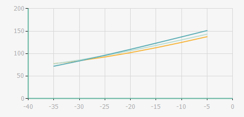 | 蒸發(fā)溫度 | 制冷量+/-5% | 能耗+/-5% | 現(xiàn)在能效+/-5% | 氣體流速+/-5% | 能效+/-7% | ||||