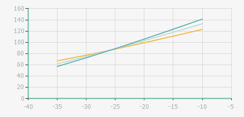 | 蒸發(fā)溫度 | 制冷量+/-5% | 能耗+/-5% | 現(xiàn)在能效+/-5% | 氣體流速+/-5% | 能效+/-7% | ||||