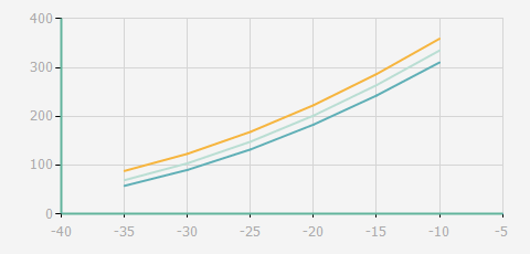| 蒸發(fā)溫度 | 制冷量+/-5% | 能耗+/-5% | 現(xiàn)在能效+/-5% | 氣體流速+/-5% | 能效+/-7% | ||||