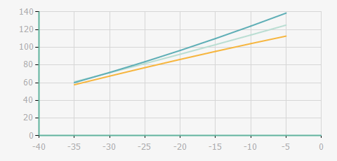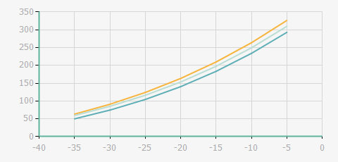| 蒸發(fā)溫度 | 制冷量+/-5% | 能耗+/-5% | 現(xiàn)在能效+/-5% | 氣體流速+/-5% | 能效+/-7% | ||||