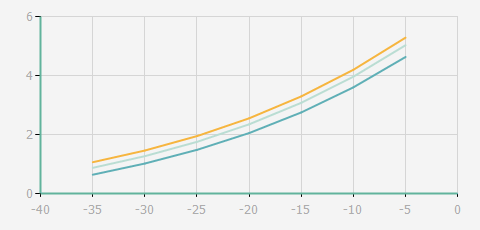 | 蒸發(fā)溫度 | 制冷量+/-5% | 能耗+/-5% | 現(xiàn)在能效+/-5% | 氣體流速+/-5% | 能效+/-7% | ||||