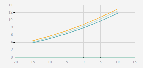 | 蒸發(fā)溫度 | 制冷量+/-5% | 能耗+/-5% | 現(xiàn)在能效+/-5% | 氣體流速+/-5% | 能效+/-7% | ||||